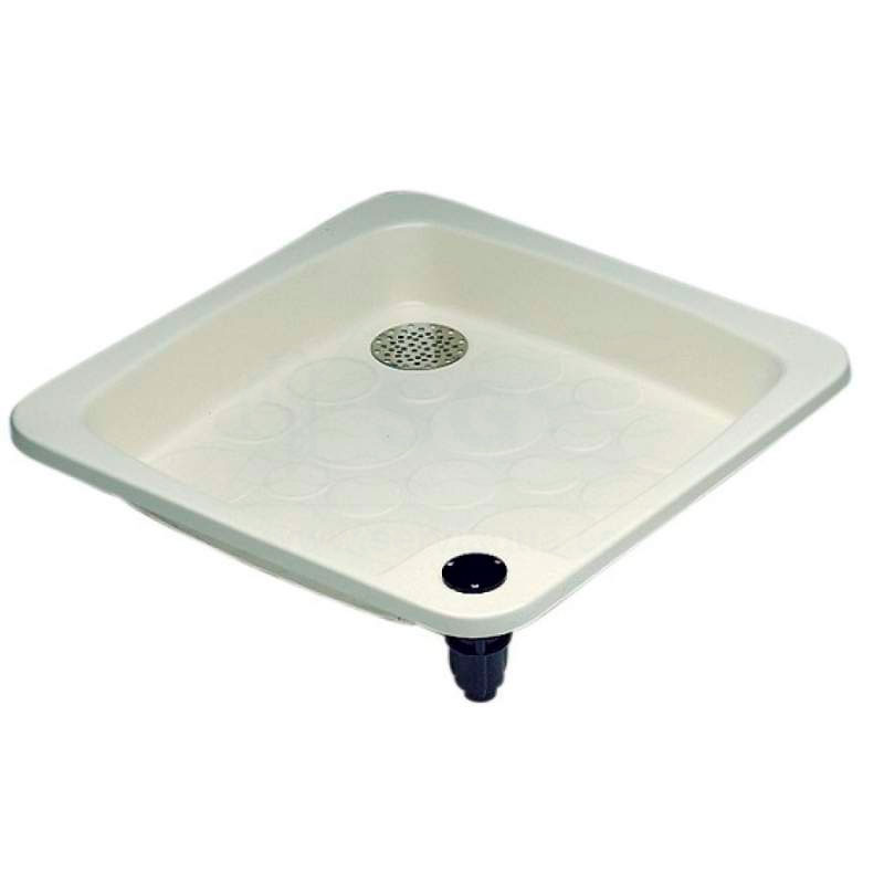 Dimensiones 80 cm x 80 cm con sumidero de desagüe orientable. Rejilla Ø 130 mm, conexión Ø 50 mm. Fabricado en poliéster + FV.