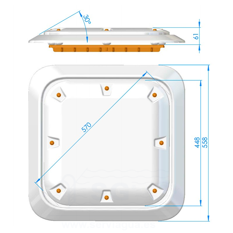Tapa antivortex extraplana 558x558. Altura 61 mm sumideros 512x512