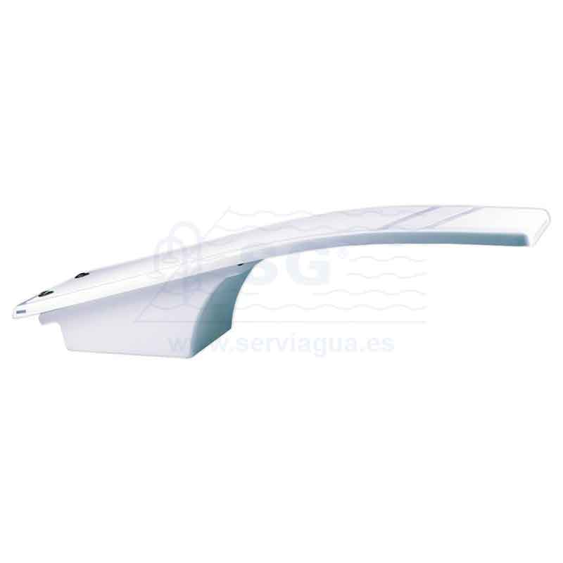 Pista de gran anchura, fabricado en resina de poliéster y fibra de vidrio. Inalterable a la degradación de los rayos U.V. y a los agentes atmosféricos. Grabado antideslizante en toda la superficie. Suministrado con anclaje. También se adapta al anclaje del modelo 00076.