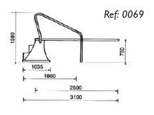 Con 2 barandillas en acero inoxidable. Peldaños y palanca antideslizante.
