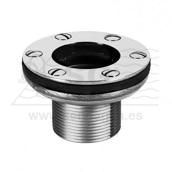 Fabricada en acero inoxidable AISI-316, con juntas de estanqueidad, brida y tornillos. Con rosca exterior de 11/2”. Se necesita rácord conexión código 05684.