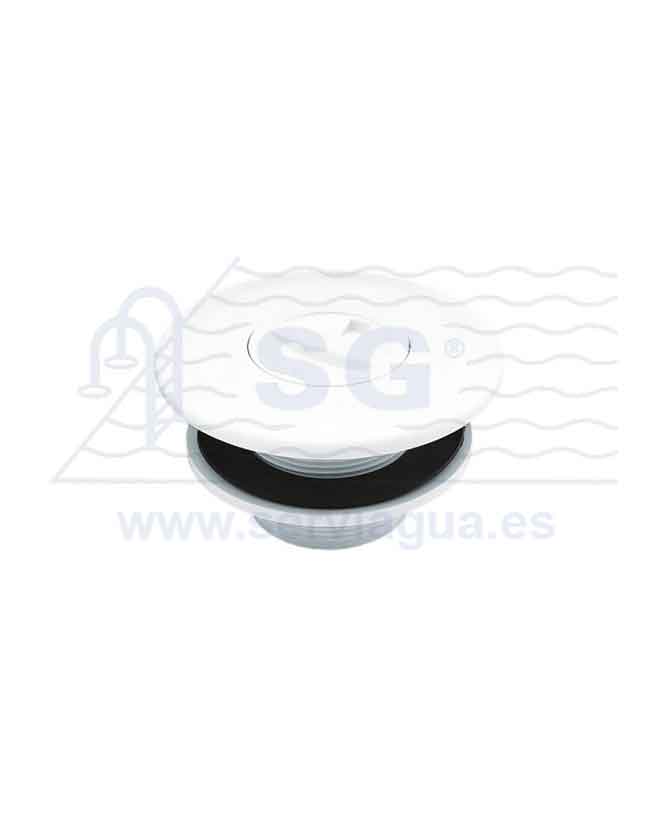 Rosca exterior 2”, Ø interior 50 mm. Para piscinas prefabricadas, Fabricada en ABS color blanco, con tapón, rosca 11/2”.