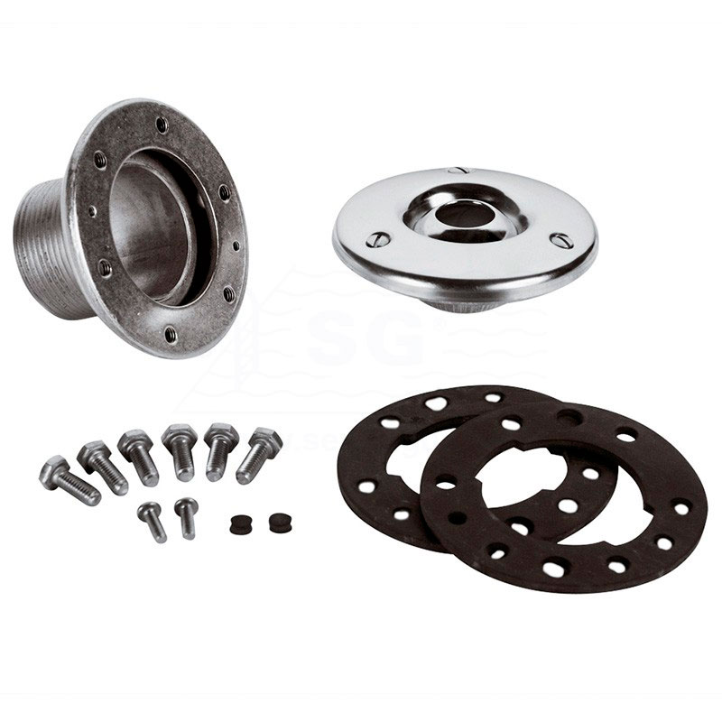 Rosca exterior 11/2”. Fabricada en acero inoxidable AISI-316L. Bola Ø 25 mm. Con juntas y tornillos. Caudal recomendado: 7 m3/h.