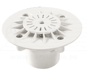 Boquilla de fondo Superpool para hormigón. Conexión roscar 2" exterior y encolar 50 mm interior. Presión 6 atm con rejilla. 12 uds/caja.