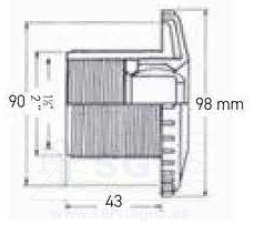 Boquilla de impulsión Hayward para pared de hormigón. Conexión roscar-2'', roscar interior 1 1/2''. Incluye 50 unidades por caja.