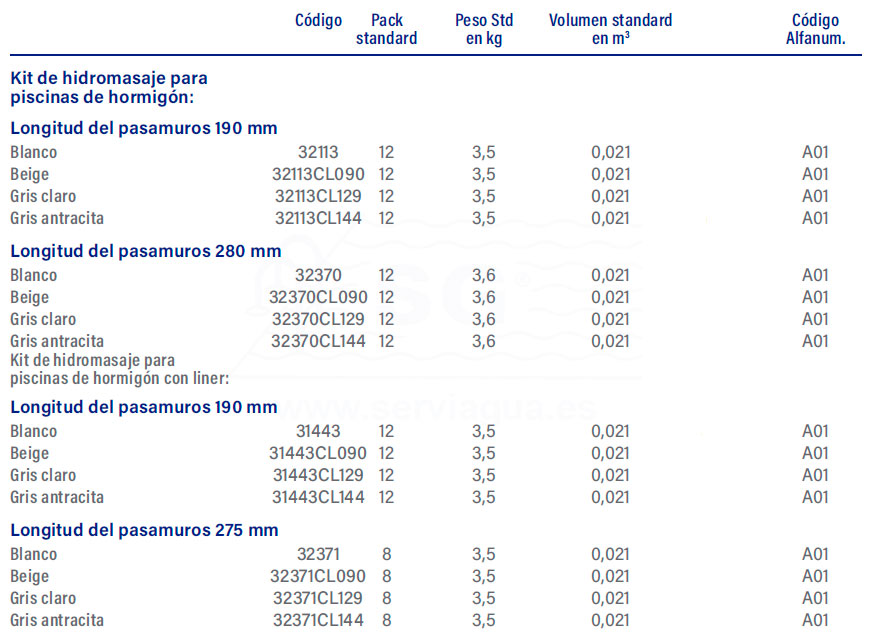 kit de hidromasaje beige - piscina hormigón 190 mm