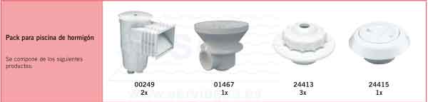 2 skimmer / 3 boquilla impulsión multiflow / 1 boquilla aspiración / 1 sumidero circular.
