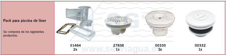 Pack compuesto por: 2 skimmer / 3 boquilla impulsión multiflow / 1 boquilla aspiración / 1 sumidero circular.