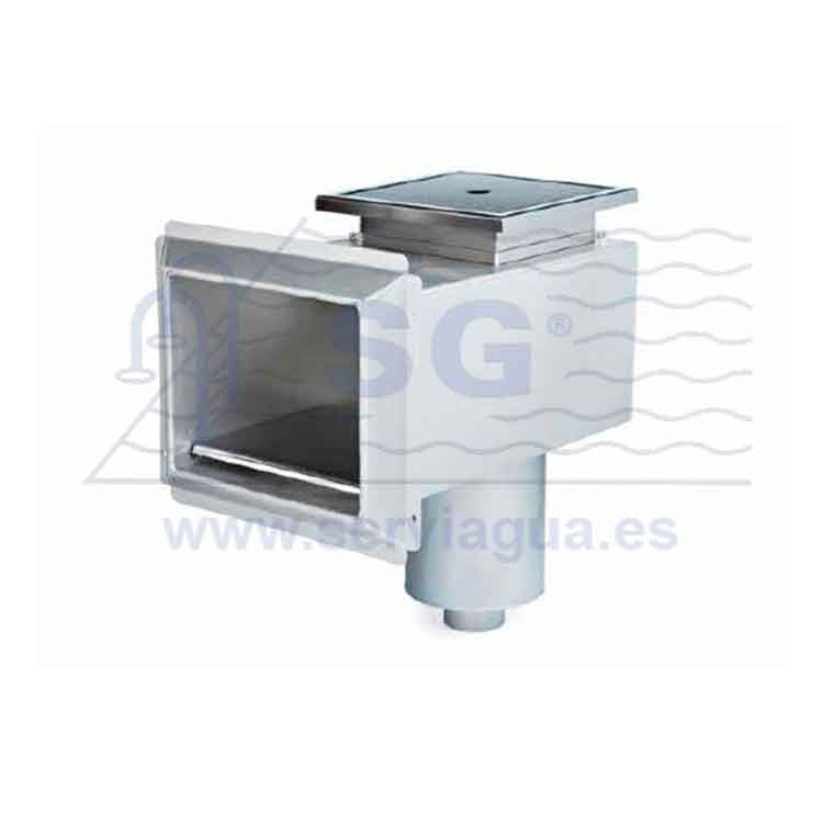 Skimer fabricado en acero inoxidable resistente al ácido. Boca estándar 335 x 285 mm. Largo de boca 60 mm.