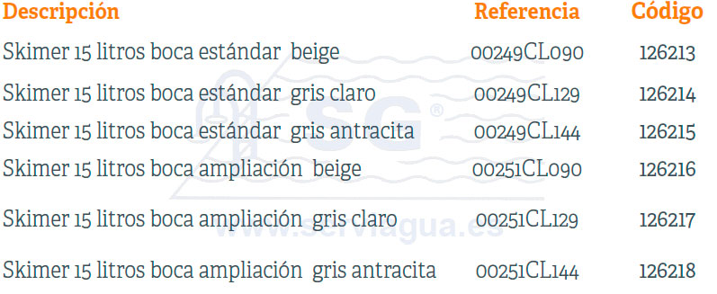 Skimmer 15 litros boca estándar beige