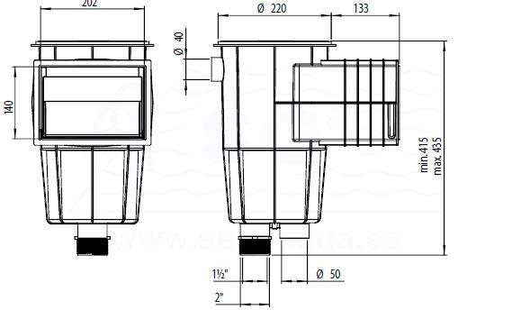 - Skimmer AstralPool de 15 litros con boca standard y tapa circular a presión para piscina de hormigón.