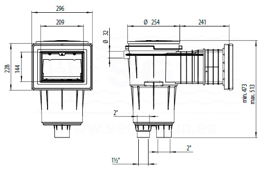 Skimmer con boca standard y alargo