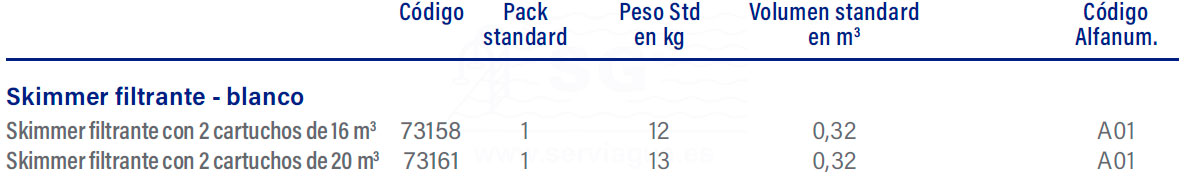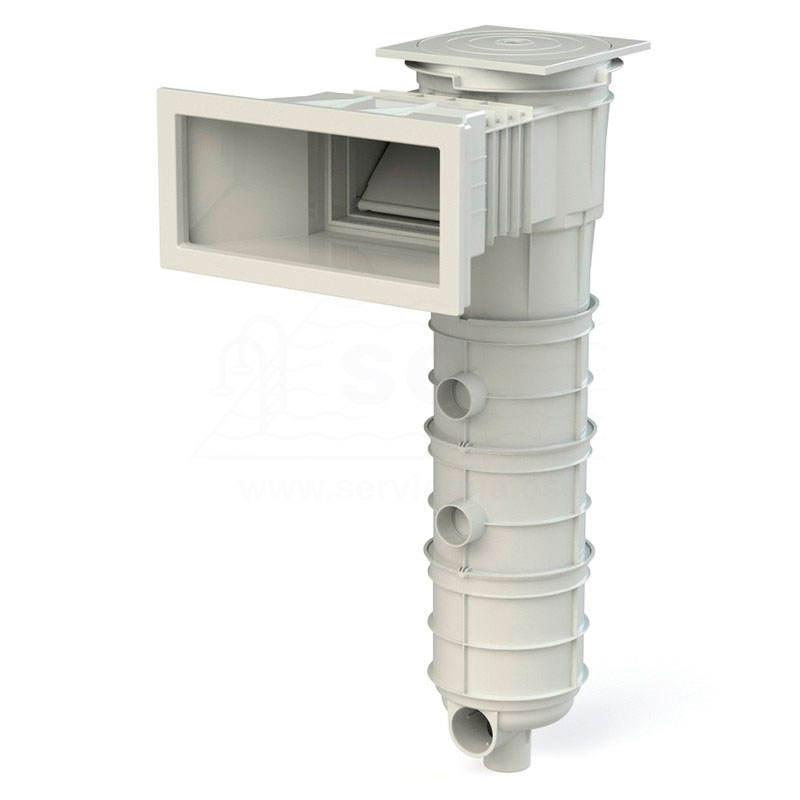 Skimmer de 17,5 l con sistema de cartucho integrado. Fabricado en ABS con tratamiento UV. Consta de compuerta, regulador de altura de la tapa, cesto y 2 filtros de cartucho. Conexión Ø 32 m para acceso