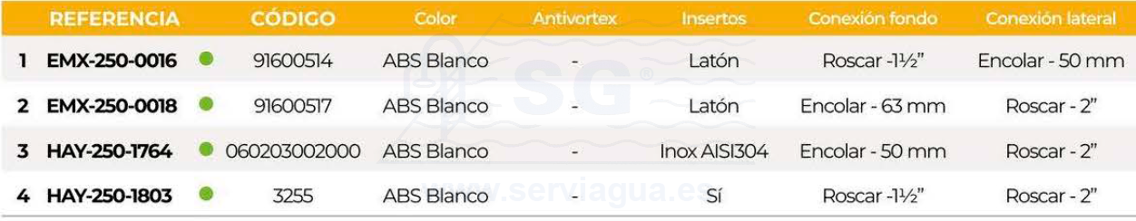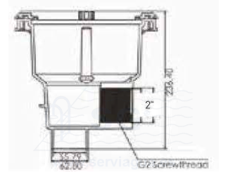Sumidero para liner en ABS blanco con inserto de latón. Conexiones: fondo 1½" roscar y lateral 63mm encolar.