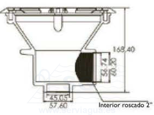 Sumidero para liner en ABS blanco con inserto de latón. Conexiones: fondo 1½" roscar y lateral 50mm encolar.