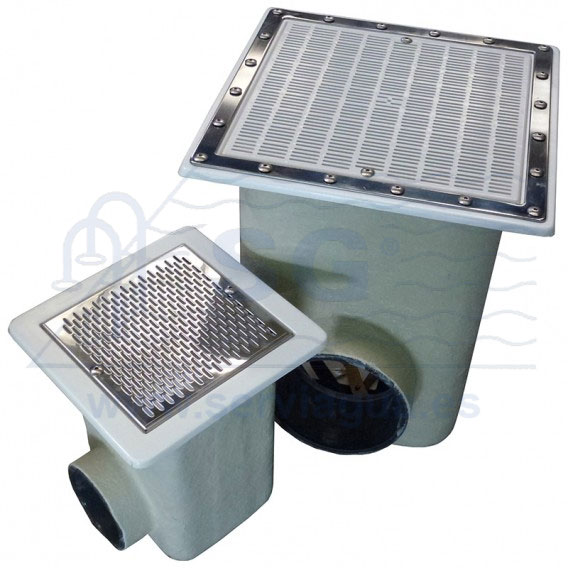 Nueva gama de sumideros que cumplen con las exigencias de la normativa EN-13451-1/3 2012. Fabricados en resina de poliéster y fibra de vidrio. Reja de acero inox o plástico. Válvula hidrostática opcional.