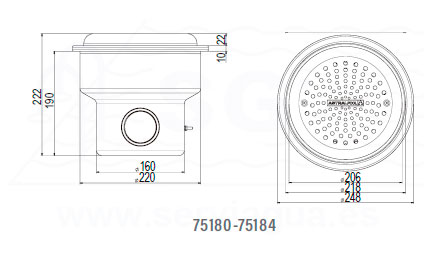 Gama de sumideros fabricados en acero inoxidable AISI-316L, equipados con una conexión de salida lateral de 2".