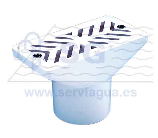 Para encolar a tubo Ø 63 mm. Cuerpo y reja en material plástico ABS, tornillería de acero inoxidable. Por sus características, esta boquilla está especialmente indicada para canales de rebosadero. Caudal máximo recomendado: 7 m3/h.