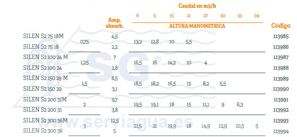 Nueva serie SILEN autoaspirante 4 metros y ultrasilenciosa. Cuerpo bomba, pie, rodete, soporte sello y difusor en polipropileno. Eje motor