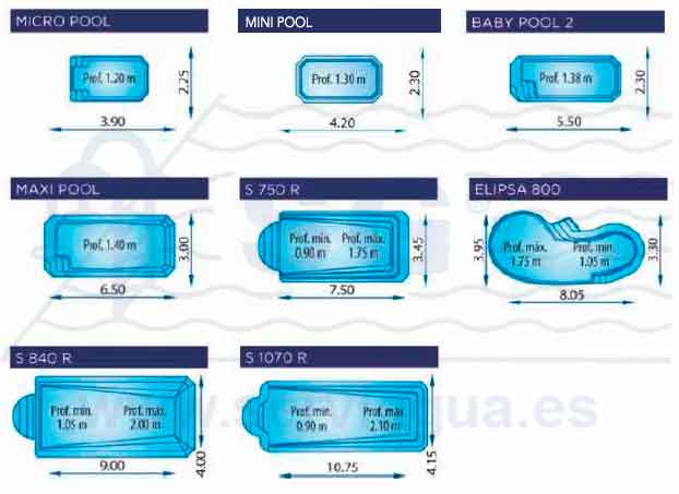 Piscinas de poliéster dotadas de estructura autoportante, con refuerzos a modo de brazos a lo largo de toda la estructura. Estos refuerzos permiten compensar las presiones exteriores e interiores asegurando en todo el perímetro de la piscina una compensación entre las partes superiores e inferiores.