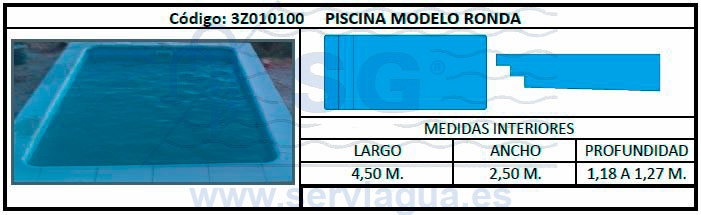 Piscina poliéster modelo Ronda 4.50 x 2.50 m.