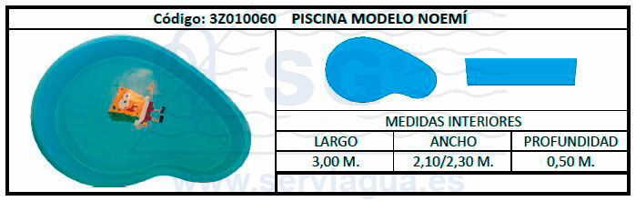 Piscina poliéster modelo Noemí 3.00 x 2.10 a 2.30 m.