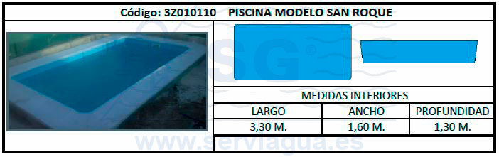 Piscina poliéster modelo San Roque 3.30 x 1.60
