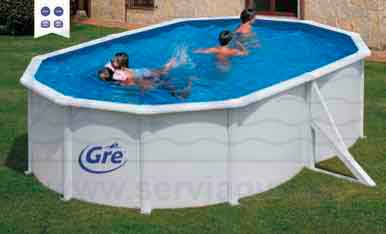 - Piscinas de 120 cm de altura con liner azul 30/100 (modelos 730 y 610 con liner azul 40/100), perfilería de acero, protectores de inyección y escalera de seguridad 2x3 peldaños.