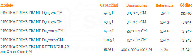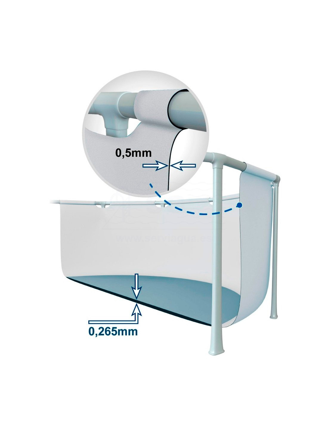 • Piscina con un terminado elegante es sencilla de montar: hay que instalarla sobre terrenos nivelados y firmes para una correcta utilización. Este modelo de piscinas elevadas y tubulares incluye depuradora de cartucho
