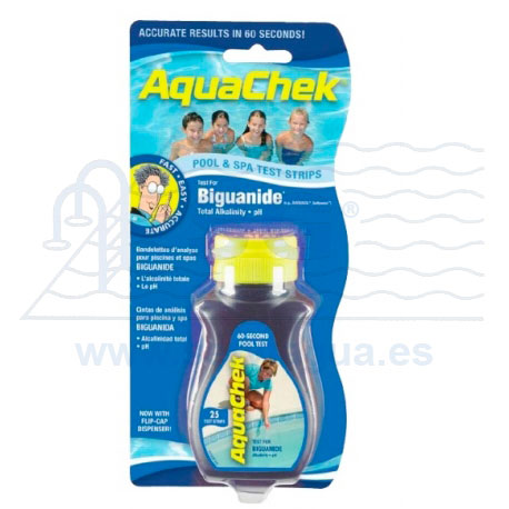Tiras analíticas 3 parámetros para analizar la biguanida, la alcalinidad total y el pH (25 tiras por bote).