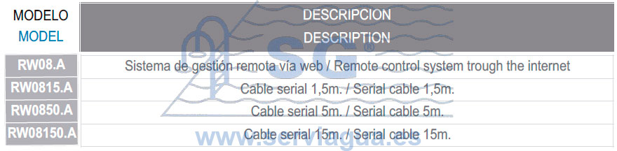 Cable de Sistema de control remoto vía web modelo RW0815.A
