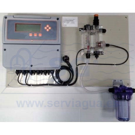 Compuesto por instrumento, sonda amperométrica ( Cu-Pt) autolimpiable, sonda de pH , dispositivo para calibración de sondas y filtro mecánico para entrada de agua.