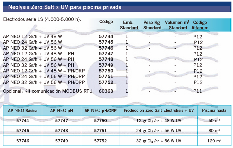 - Neolysis. Zero Salt x UV. Sin mantenimiento de aporte de sal.