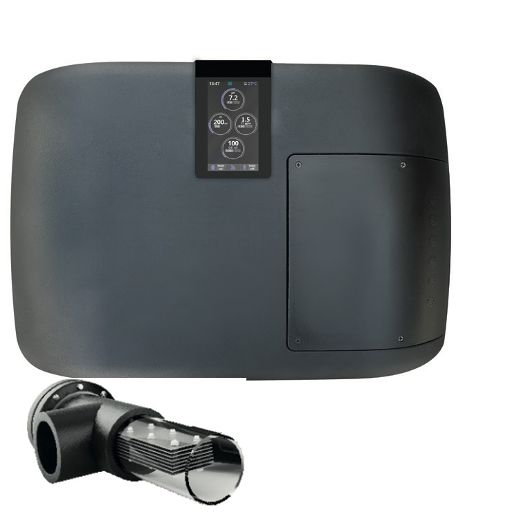 - Control de sal de alta capacidad combinado con una caja de control del equipo de la piscina.