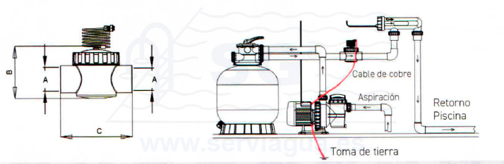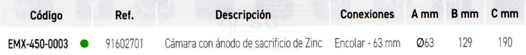 Cámara con anodo de sacrificio de zinc. Protege la instalación de corrosión