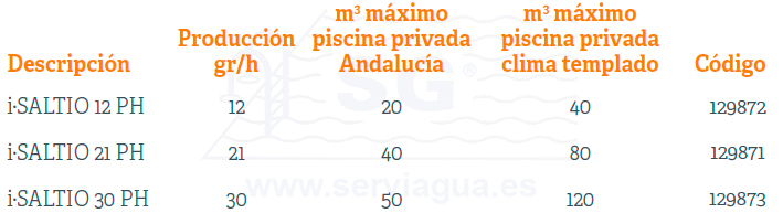 • Tres producciones disponibles: 12 g/h, 21 g/h y 30 g/h.