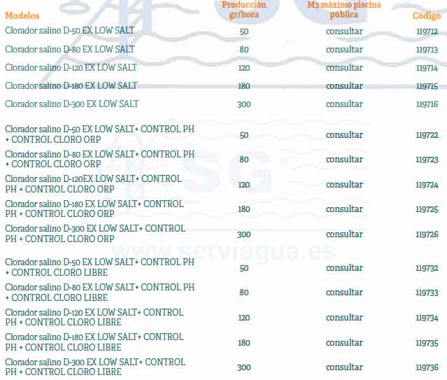 Clorador salino D-50/D-80/D-120/D-180/D-300 EX LOW SALT
