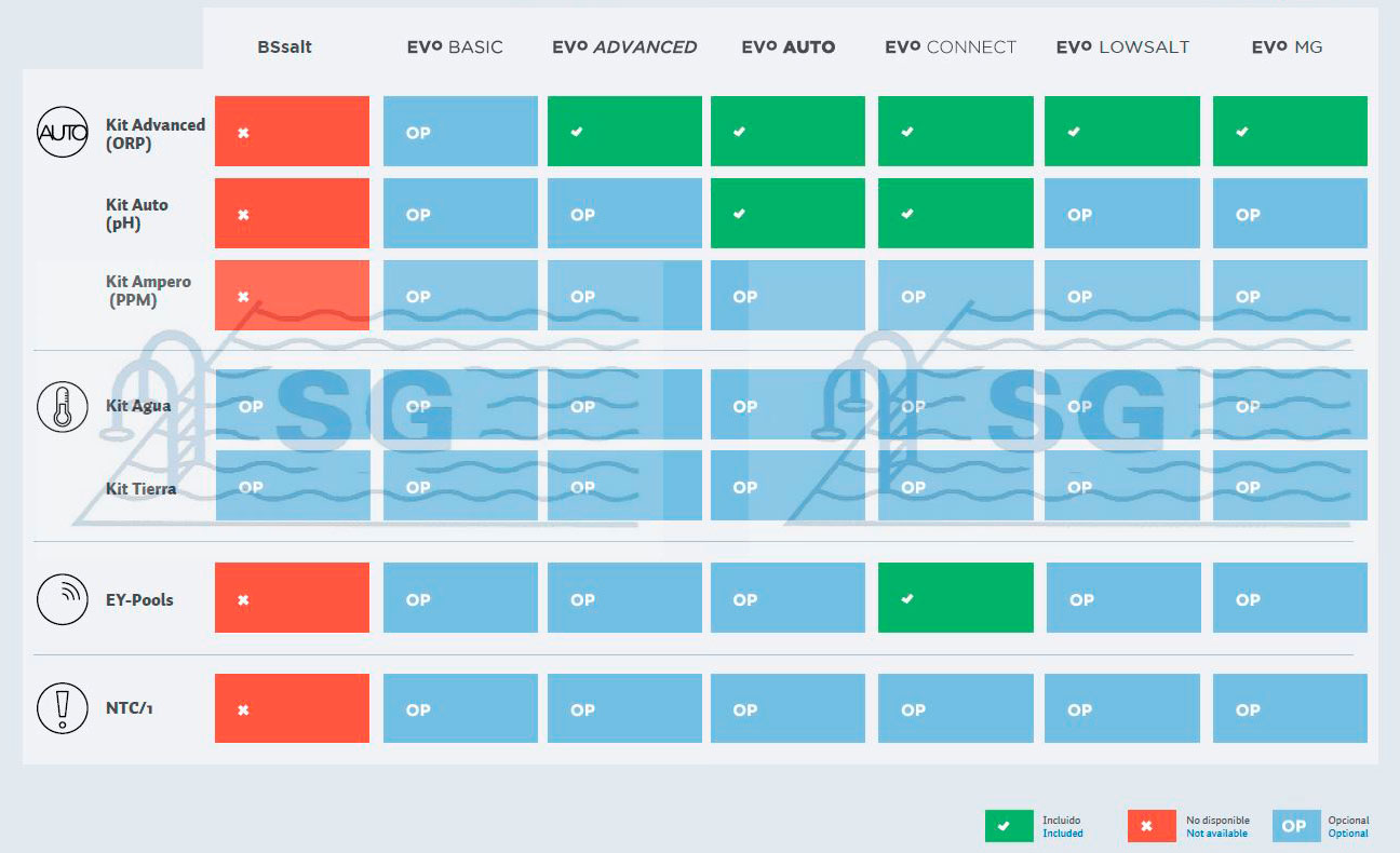 Regulación de cloro automático | Si | Si | Si | Si | Si |
