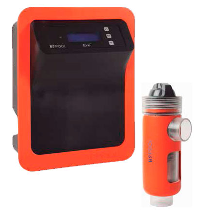 Clorador salino compacto en caja IP65 con display digital y producción de 10 a 35 gramos, destinados para piscinas privadas.