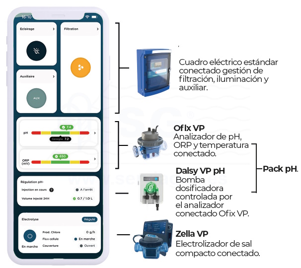 ▶ En la aplicación VigiPool es posible configurar el nivel de producción, el modo de producción o la dureza del agua para una inversión de polaridad adecuada.
