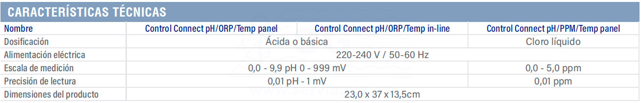 • Equipado con salidas dedicadas para bombas dosificadoras de pH y cloro