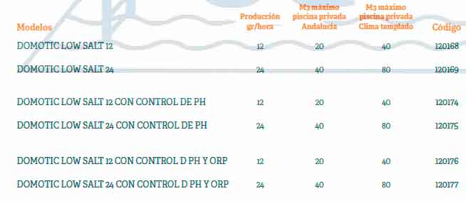 • Funcionamiento con baja salinidad (a partir de 2 gr litro)