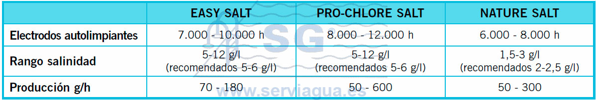 Válido para Easy Salt, Pro-Chlore Salt y Nature Salt: