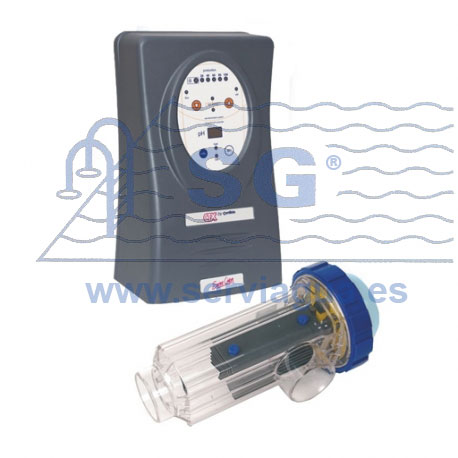 Electroclorador que transforma el agua ligeramente salada de su piscina en agua clorada. Sprint Chlore posee electrodos de titanio de recubrimiento autolimpiable por inversión de polaridad electrónica, microprocesador y detector de caudal incluido.