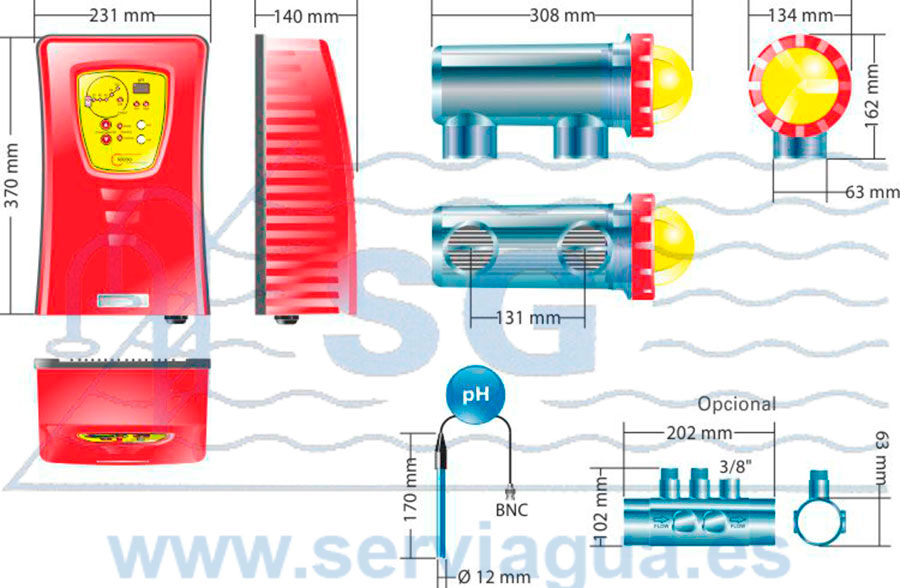 - Los equipos con control de pH se suministran con sonda y bomba dosificadora electromagnética ( no peristáltica) serie INVICTA.