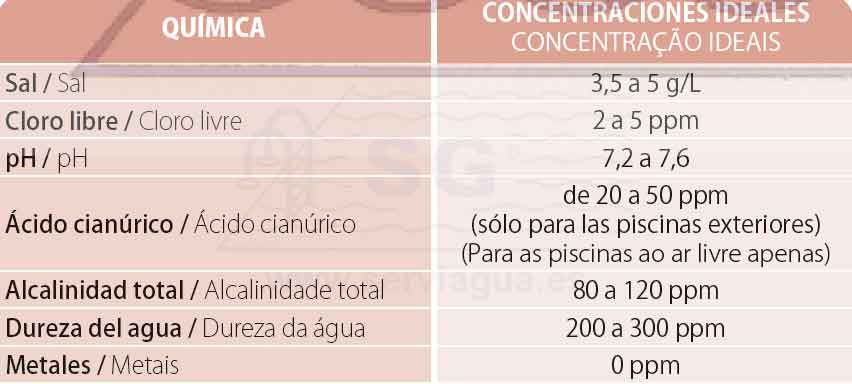 Producción de cloro 95g/hora (3,5 g/l de NaCl).