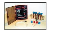 Equipo AQ sin control de PH con puestos por caja electrónica y vaso de ionización y Equipo PH con control de PH, compuesto por caja electrónica, vaso de ionización, vaso soporte de sondas y bomba dosificadora.