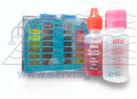 la piscina. se componen de 2 reactivos, el OTO (orto-toluidina) para la determinación del nivel desinfectante,