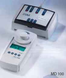 Fotómetro controlado por micropro-cesador para la determinación precisa de cloro libre y combinado, pH y ácido cianúrico. El equipo se suministra en un práctico maletín de ABS con cierre her-mético.