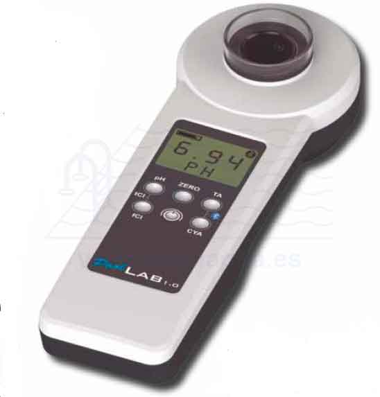 Una cubeta, que está integrada en el fotómetro pero que es intercambiable, permite, de manera muy rápida y fácil, tomar la muestra de agua.Simplemente es necesario sumergir el fotómetro dentro de la piscina.El fotómetro Pool I.D. tiene un grado de protección subacuática IP67. En otros fotómetros la cubeta no es intercambiable y una vez que se raya es necesario comprar otro fotómetro completo. Pool LAB 1.0 ha sido diseñado para tener un acceso instantáneo a los parámetros instalados, con sólo seis botones :Cloro (libre, combinado y total) - pH - Alcalinidad (capacidad de ácido) - ácido cianúrico (estabilizador) -Oxígeno activo (MPS) - Bromo - Dióxido de cloro - Ozono - Peróxido de hidrógeno.